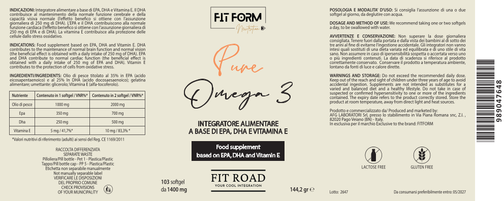 Integratore alimentare a base di EPA, DHA e Vitamina E. Il DHA contribuisce al mantenimento della normale funzione cerebrale e della